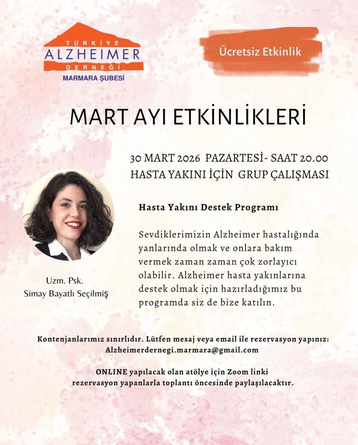 Sevdiğiniz bir aile üyenizin hastalığı ile baş etmenin stresli, yorucu ve zor olduğunun bilincindeyiz. Bu uzun ve zorlu yolculukta, siz bakım verme rolünü üstlenen değerli kişilerin yanında olabilmek için ve bilgi birikimimizin sizlere rehber olması adına online psikoeğitim ve destek grupları oluşturduk.