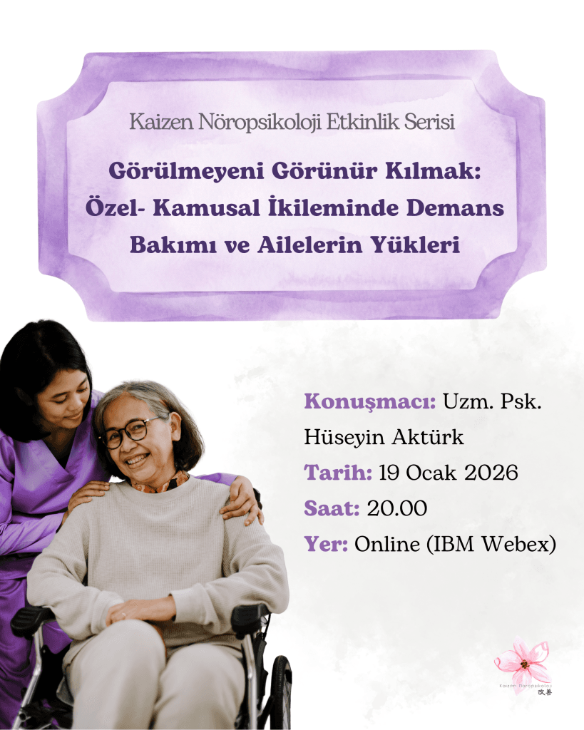 Herkese merhabalar, Kaizen Nöropsikoloji demanslı bireylerin bakım verme rolünü üstlenen yakınlarına destek olmak için kurulmuş online olarak faaliyet gösteren bir nöropsikoloji platformudur. Bunun yanı sıra nöropsikoloji alanı ile ilgilenen öğrencilere ve yeni mezunlara destek olmayı, alana dair bilgi ve deneyim sağlamayı hedeflemektedir. Bu hedef doğrultusunda bilimsel içerikler üreterek doğru ve etik bilgi akışı sağlamamıza destek […]